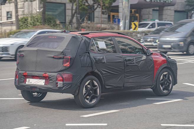 측면부는 부분변경 모델인 만큼 신규 휠 및 가니쉬 추가 등 일반적인 변화가 예상된다. 특히 휠 디자인은 투톤 컬러 구성으로 기아 상위 라인업 모델들과 유사하다. 신형 스토닉 후면부에는 기아 EV5가 연상되는 스타맵 시그니처 라이팅 테일램프가 새롭게 탑재됐다.