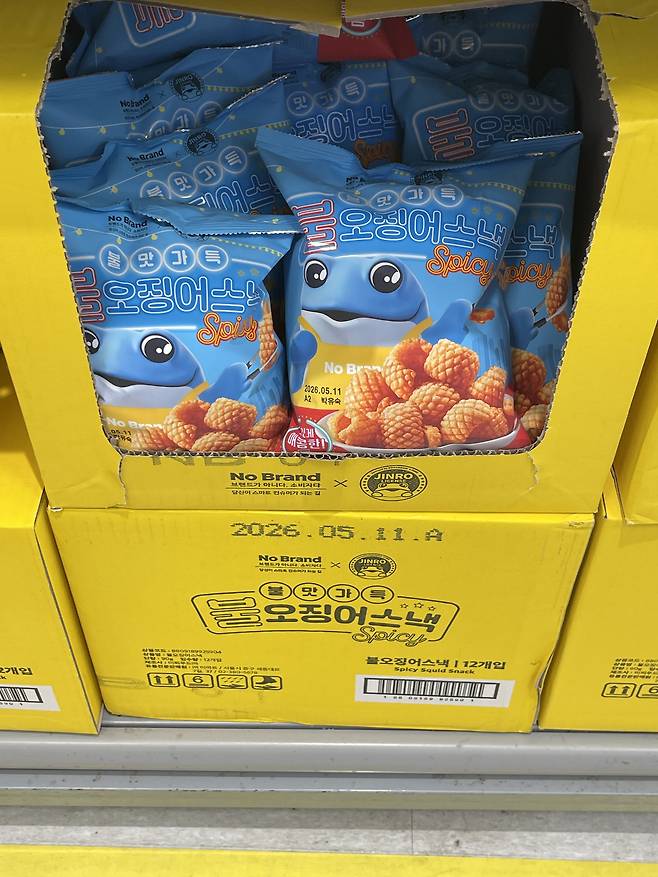 노브랜드×진로 콜라보.매콤한 불맛과 바삭한 식감의 중독적인 맛의 스낵이에요.