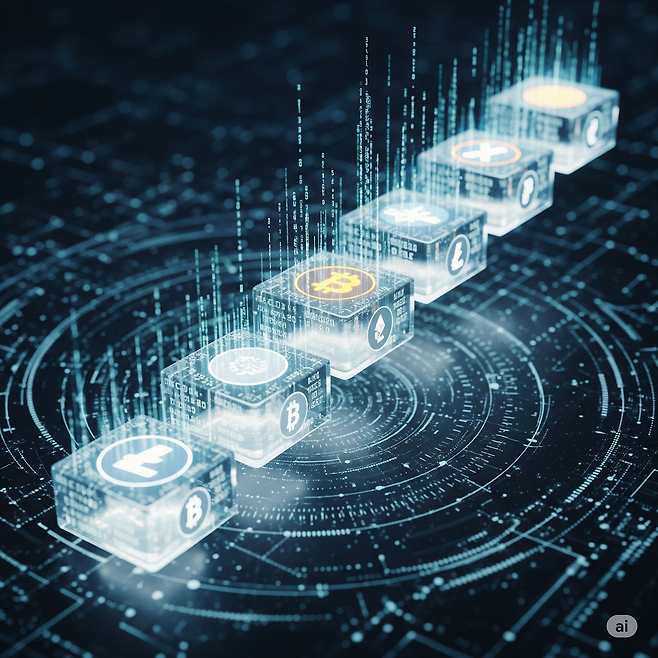 이 '블록'들이 꼬리에 꼬리를 물고 연결되어 '체인(Chain)'을 형성하는 것이 바로 '블록체인(Blockchain)'입니다.