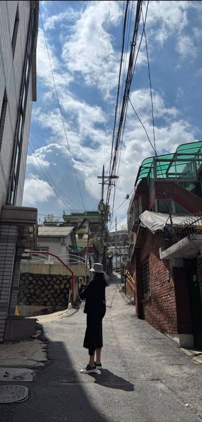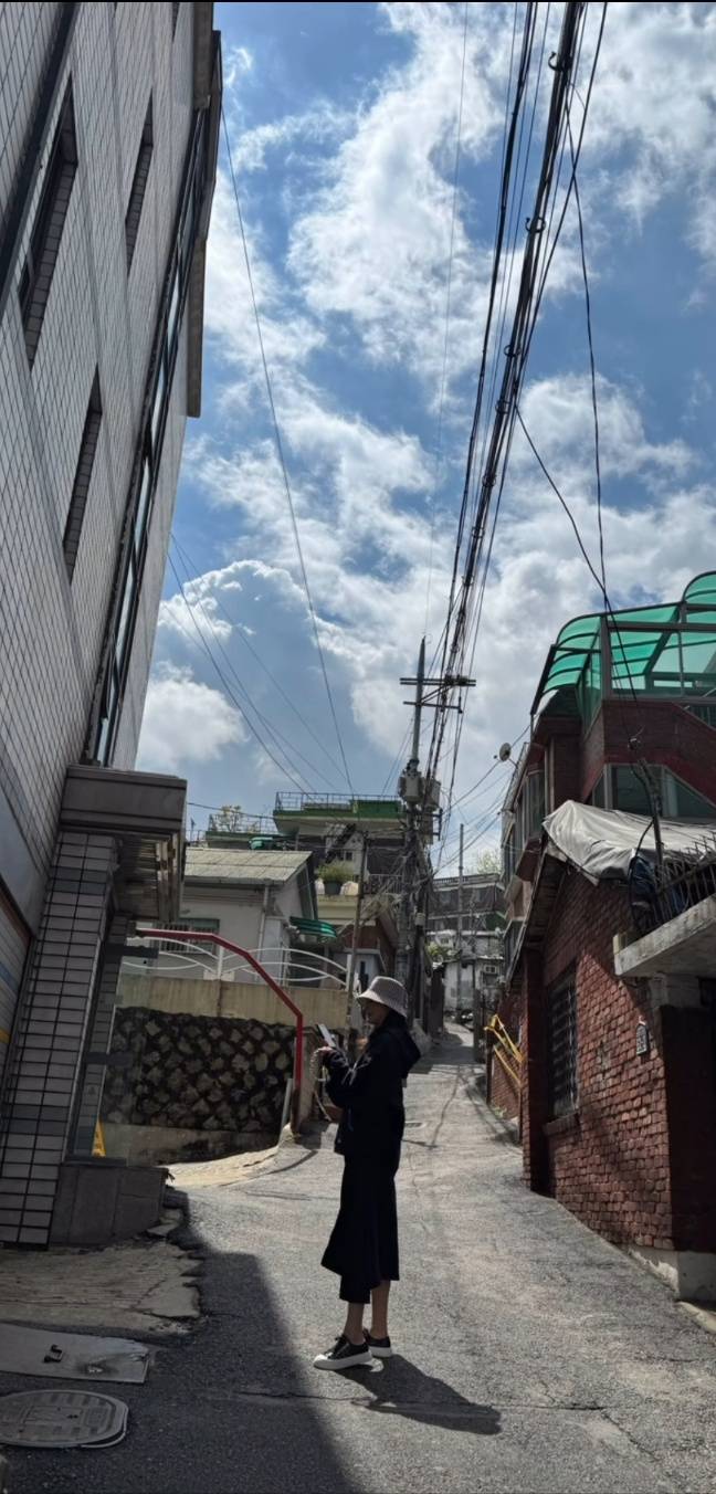 피부에는 기초 케어 혹은 자외선 차단제만 바른 듯한 모습입니다. 큰 잡티는 컨실러를 사용해 부분적으로 감춰 피부의 질감을 더욱 가볍게 연출하고 있습니다.