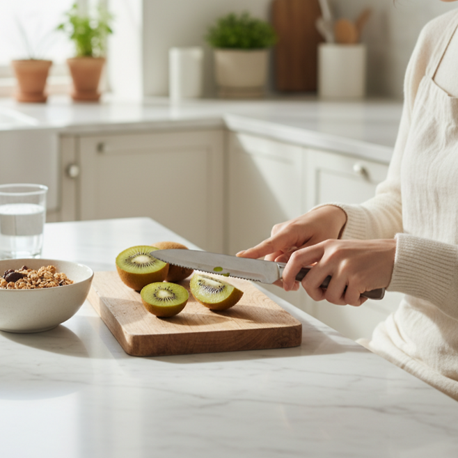 가장 좋은 실천 방법은 '오늘부터 딱 일주일간 매일 키위 두 알씩 챙겨 먹기'입니다. 껍질 근처에 영양소가 많으므로 깨끗이 씻어 껍질째 드시거나, 숟가락으로 푹 떠서 간편하게 즐겨보세요. 무겁고 답답했던 아랫배가 가벼워지면서, 하루의 시작이 몰라보게 상쾌해질 것입니다.