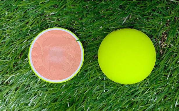 커버 부분은 탄성이 좋고 내구성이 뛰어난 소재를, 속 부분인 코어에는 저스핀을 유도하는 부드러운 소재가 적용됐습니다. 두 소재의 조화로 직진성이 극대화되면서 비거리를 향상 효과를 누릴 수 있죠.