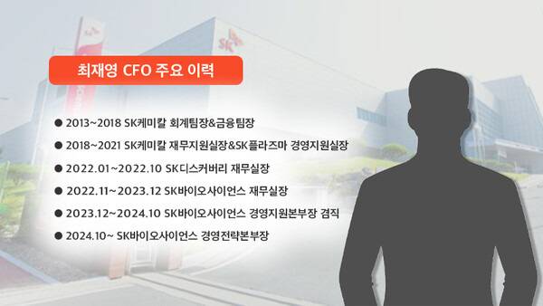 11일 업계에 따르면 최재영 CFO는 SK바이오사이언스에 합류하기에 앞서 2013년부터 2018년까지 SK케미칼에서 회계팀장과 금융팀장을 거쳤다. 2018년부터 2021년까지는 SK케미칼 재무지원실장과 SK플라즈마 경영지원실장을 역임했고, 2022년 1월에 SK디스커버리로 자리를 옮겨 그해 10월까지 재무실장을 맡았다. 2022년 11월부터 2023년 12월까지 SK바이오사이언스 재무실장을 맡다가 같은 해 12월부로 경영지원본부장을 겸했으며, 지난해 10월 경영전략본부장이 됐다. 경영지원본부장과 경영전략본부장은 사실상 같은 보직이며, 조직명과 직책명만 변경됐다는 것이 회사 측 설명이다. 실질적으로는 2023년 말부터 경영전략본부장 역할을 맡고 있는 셈이다.