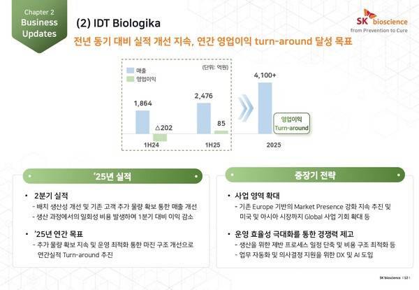 이제 시장의 관심은 안정적인 유동성을 넘어 실적 반등 시점에 쏠려 있다. 현금여력이 1조원 안팎으로 유지되고 있지만, 영업적자가 장기화될 경우 자산 운용만으로는 기업가치 제고에 한계가 있다는 관점이다. 업계에서는 결국 SK바이오사이언스가 언제 실적 턴어라운드의 모멘텀을 마련하느냐가 향후 재무전략의 평가 기준이 될 것으로 보고 있다.