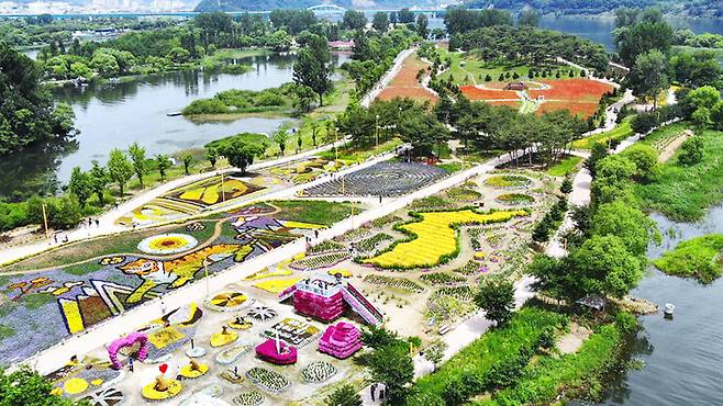 봄과 여름이 교차하는 이맘때, 경기도 가평의 자라섬은 그야말로 꽃의 천국으로 변신한다.