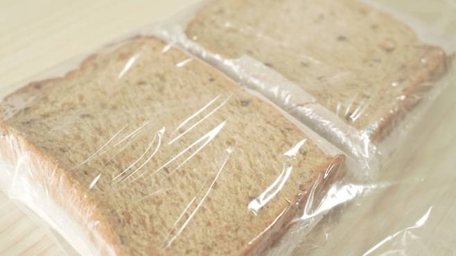 이렇게 해서 냉동보관하면 식빵끼리 달라붙지 않아 나중에 먹을 때 편해요. 그리고 냉동실 냄새가 나지 않아 방금 사 온 것처럼 맛있게 먹을 수 있답니다.