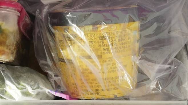 그리고 평소와 같이 냉동실에 보관하면 되는데요. 이렇게 두면 아이스크림이 너무 딱딱하지 않게 보관되어 꺼냈을 때 맛있게 아이스크림을 즐길 수 있어요.