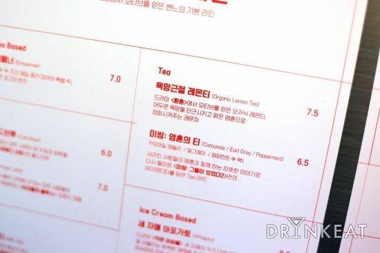 <환혼>에서 모티브를 얻은 레몬티 욕망근절 레몬티, <연예인 매니저로 살아남기> 속 프로 매니저들의 열정과 사랑, 영혼을 갈아 민든 밀크티 메쏘드 밀크티, <작은 아씨들> 세자매처럼 서로 다른 매력을 드러낸 하겐다즈, 밀크, 에스프레소를 담은 세 자매 아포카토 등. 웃음 빵 터지게 만드는 네이밍으로 한참을 들여다보게 만든 메뉴판이야.