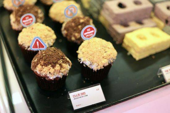 짜-잔. 단단해 보이지만 쪼개는 재미가 있었던 벽돌 케이크. 정말 욕망이 사그라들고 마음이 편안해지는 욕망근절 레몬티, 모든 사람의 달고도 쓴 인생을 응원한다는 <우리들의 블루스> 우블라떼를 맛봤어. 따뜻하면서도 달콤한 맛이 절로 기운을 나게 했달까. 게다가 드라마 OST가 쉬지 않고 흘러나와 감성에 절로 젖어 들 수 있었어. ‘저희 현장은 여러분의 즐거움을 제일로 생각합니다’라는 문구가 위트로만 느껴지지 않았던 이유이기도 해.