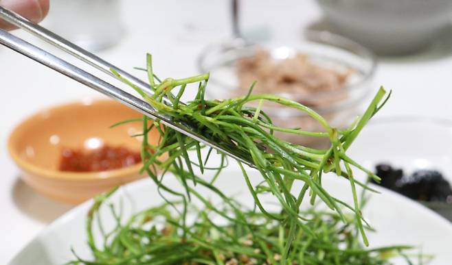 여러분, 세발나물 드셔보셨나요? 바다향 가득~ 특유의 짭짤한 맛과 아삭한 식감으로 유명한 해양 채소인데요.