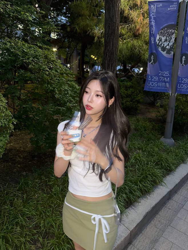 조명이 은은한 카페나 해 질 녘 골목 같은 공간에서도 이 룩은 존재감 있게 연출돼요.