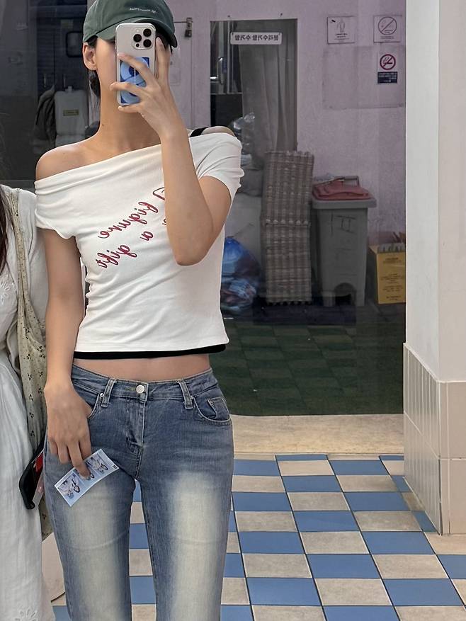 상체에 포인트가 강할 땐 하의는 최대한 심플하게.