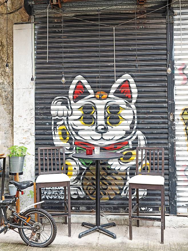 이웃 간의 관계가 끈끈하고 정이 넘치는 동네. 타이항의 젊은 랜드마크로 떠오르는 공간 중 하나인 갤러리 더 숍하우스(The Shophouse)의 프로젝트 매니저 애비 챈(Abby Chan)도 이 지역의 매력을 묻는 질문에 존과 같은 이야기를 했다. “안에서도, 바깥에서도 이웃들과 함께 거리를 걷는 사람들이 아주 잘 보여요. 문을 열면 바로 그라운드가 있으니까요. 그래서 사람들과 눈을 맞추고 대화를 나누기가 쉽죠. 이 공간을 운영하는 아트 에이전시 언베일 언리미티드에서 타이항의 100여 년 된 건축물을 선택한 이유예요.”