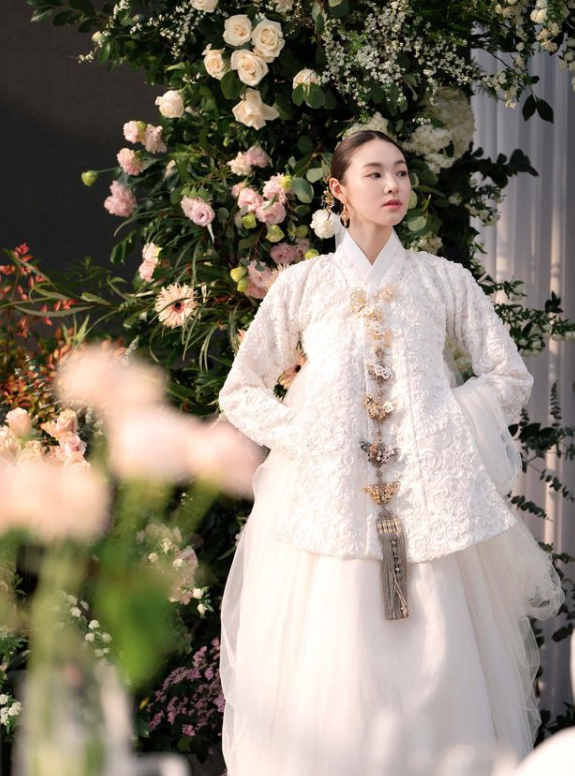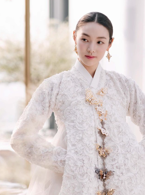 최미나수는 자수가 고급스러운 흰색 한복을 착용했는데요.
