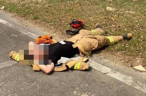 사진 속에는 한 소방관이 야외 주차장으로 보이는 곳에서 방화복 상의를 벗고 잠시 누워 휴식을 취하고 있었다. 다른 사진에서는 검게 그을린 방화복을 입고 피로에 지친 얼굴을 한 소방관의 모습이 포착됐다.