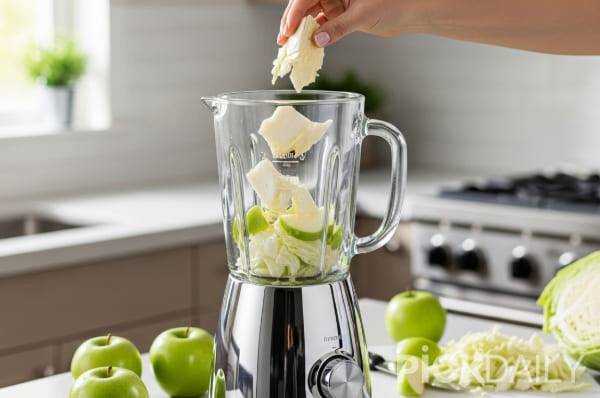 사과랑 갈아서 주스로 먹으면 정말 맛있습니다. 사과의 단맛이 더해져서 아이들도 잘 마십니다. 양배추 심지 한 줌(약 100g), 사과 반개, 물 반 컵 정도 넣고 믹서기에 갈아주세요. 사과가 단맛을 내주고 양배추 특유의 풀냄새도 잡아줍니다.
