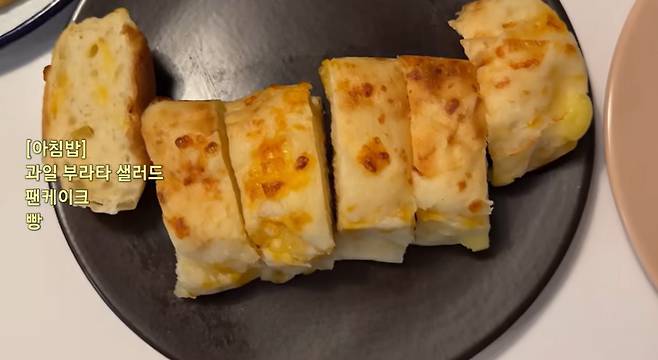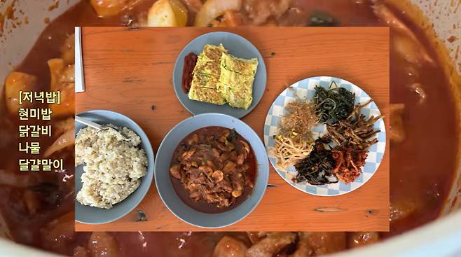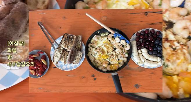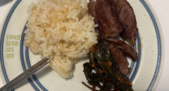 이날 아침식사는 윤승아의 식단에 자주 등장하는 부라타 치즈와 과일, 빵이다. 저녁은 고기와 김치, 밥으로 단출하게 먹었다.