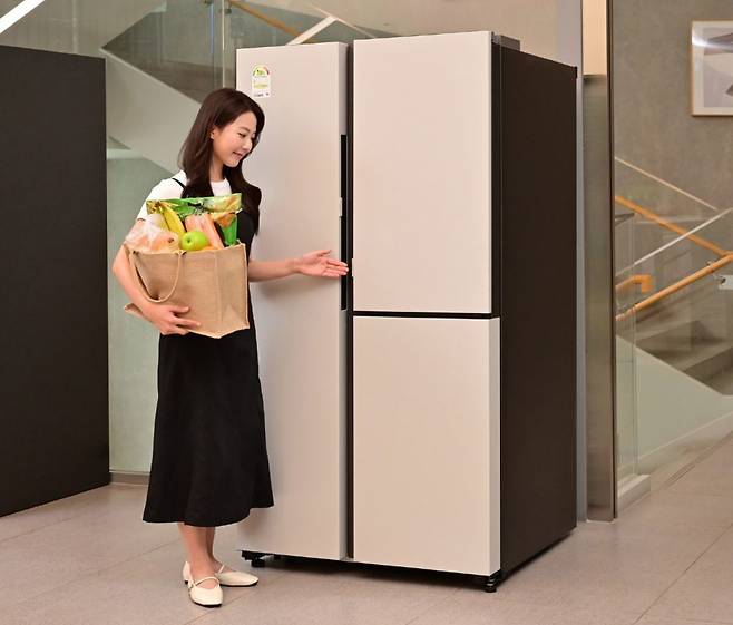 오토 오픈도어와 AI 기능 강화 양문형 냉장고