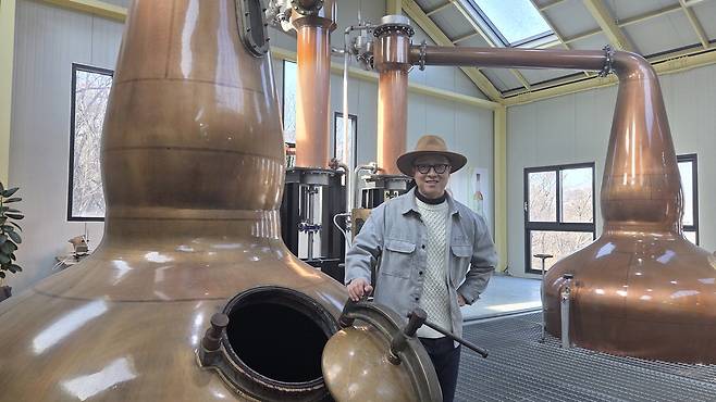남양주 백봉산 자락에 자리한 '기원(KI ONE) 위스키 증류소'. 비탈길을 따라 올라가자 카우보이 모자와 뿔테 안경을 쓴 도정한 대표가 환한 표정으로 맞았다. 한국 최초 싱글몰트 위스키 제조사인 기원이 최근 경사를 맞으면서 그의 얼굴에도 활기가 묻어났다.