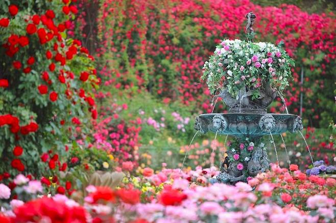 유럽의 정원을 연상시키는 장미원에는 형형색색의 장미꽃이 만개해 있고, 반달가슴곰이 천연덕스럽게 인사하는 모습은 그야말로 동화 속 한 장면처럼 느껴집니다.