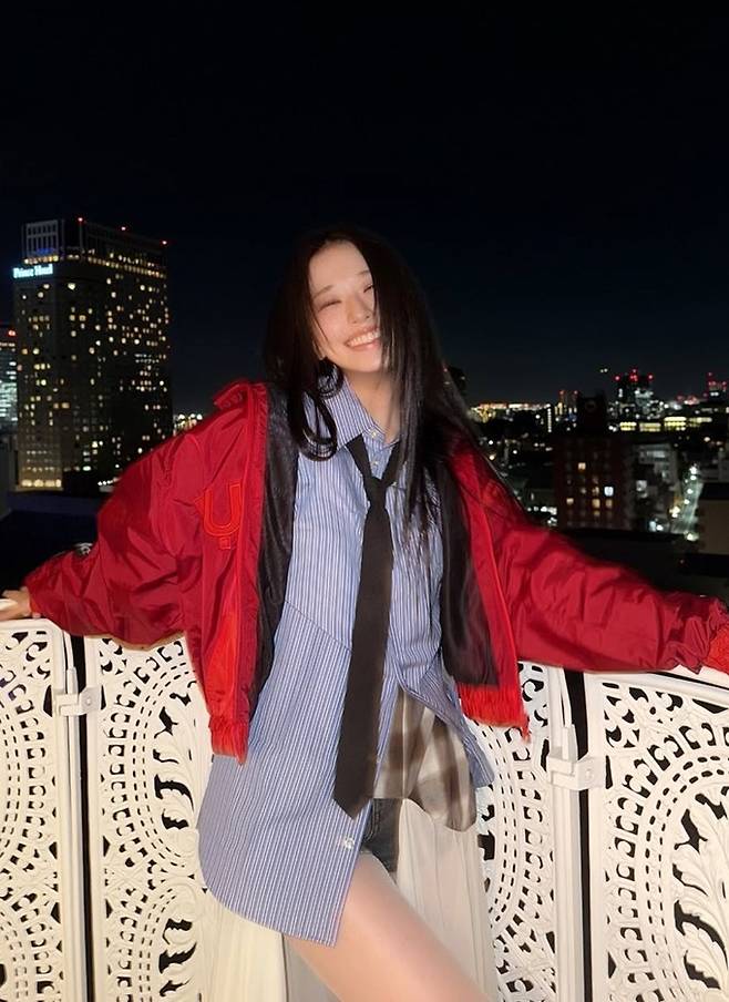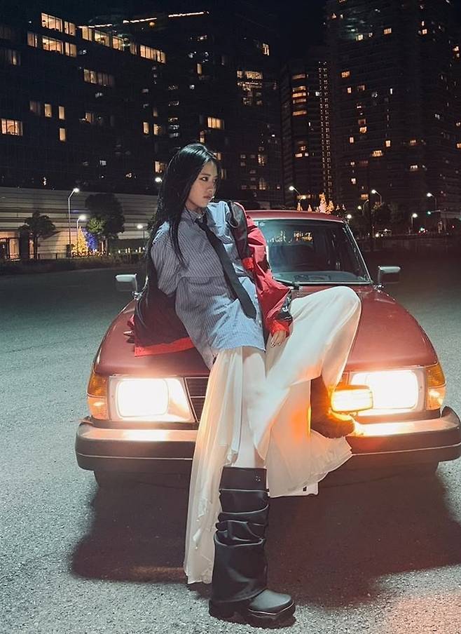 또 짧은 숏팬츠에 앞트임이 있는 스커트를 겹쳐 입고 걸크러시한 매력을 노출했다.