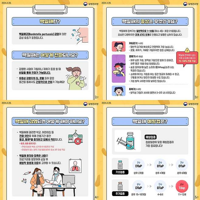 백일해는 보르데텔라 백일해균에 감염돼 생기는 세균성 호흡기 질환이다. 주로 기침, 재채기 같은 호흡기 비말을 통해 전파된다. 심한 기침이 100일 가까이 지속된다고 해서 ‘백일해(百日咳)’라 불린다. 감염 경로는 감염자의 침방울, 기침, 재채기를 통한 공기 중 전파된다. 밀폐된 공간이나 집단 생활 환경에서 전염이 쉽다.
