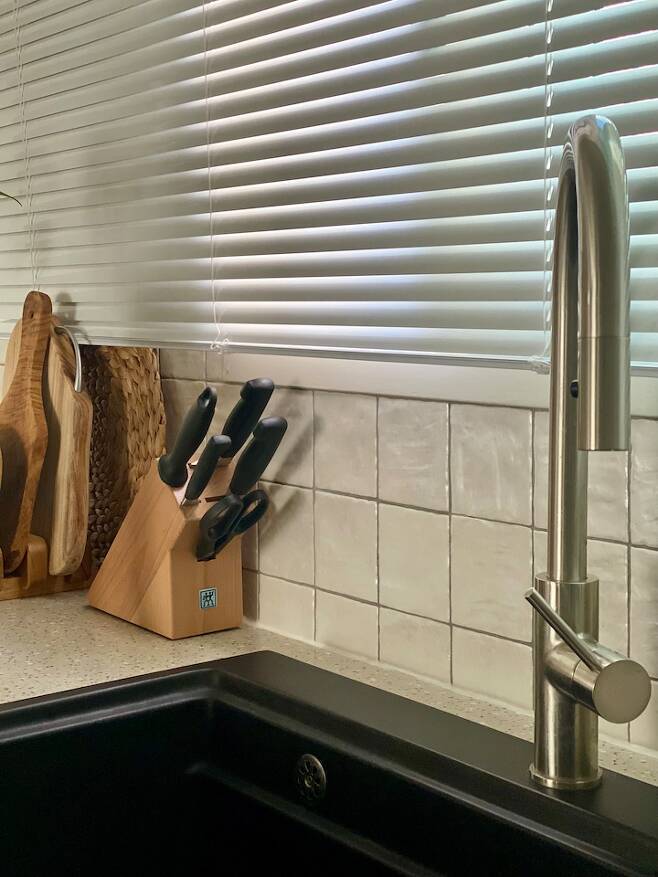 결정까지 고민이 많았지만 지금은 너무 만족하는 블랙 싱크대예요. 심플한 디자인의 수전 또한 니켈 무광으로 빌트인 가전과 컬러를 맞춰 주었습니다. 지나고 보니 하나하나 선택 장애를 겪으며 골랐던 모든 것이 모여 결국엔 집의 전체적인 분위기를 이루는 듯합니다.