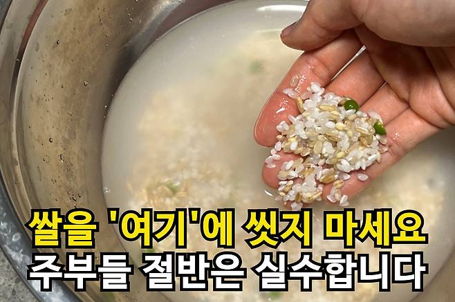 물에만 담가 두어도 대부분 이물질은 제거되지만 조금 더 신경 쓰고 싶다면 식초 1스푼 넣습니다. 또는 소금을 약간 넣어서 풀어 주세요. 삼투 작용으로 이물질이 빠져나오는 데 도움이 될 수 있습니다.