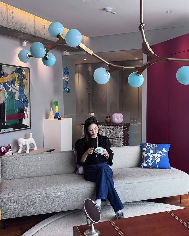 또한 아트 피스와 오브제, 조명들이 어우러진 인테리어 배경 속에서 고소영은 단순한 인플루언서가 아닌 ‘살아 있는 감성 화보의 중심’처럼 빛났습니다.