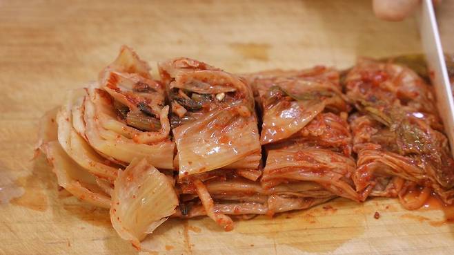 김치는 먹기 좋은 크기로 써세요.