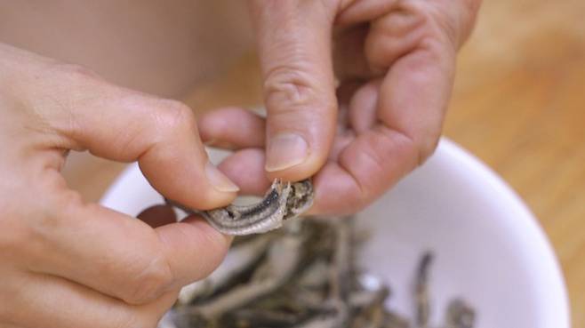 멸치 내장을 제거해야 드실 때 쓴맛이 나지 않아요.