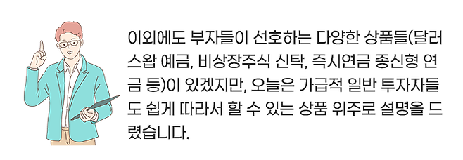 앞서 말씀드렸듯이, 부자들은 안전자산 투자에 익숙하고, 해외 투자를 통한 분산투자를 하고 있습니다.