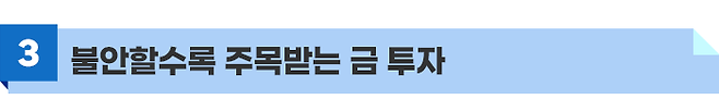 금은 경기 침체로 증시가 불안하거나 금융자산의 가치가 하락할 때 자산의 가치를 지키기 위해 투자하는 대표적인 안전자산입니다.