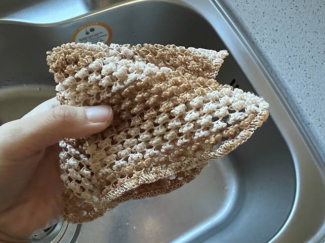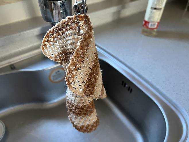 수세미는 잘 말리지 않아서 세균이 우글우글거리게 되는 겨우가 많아요