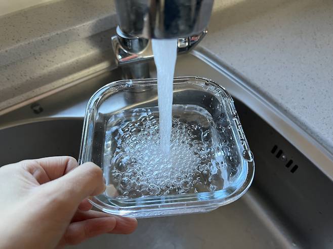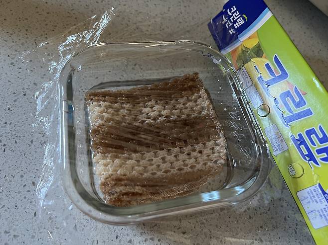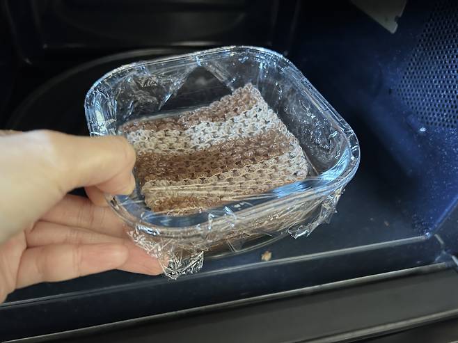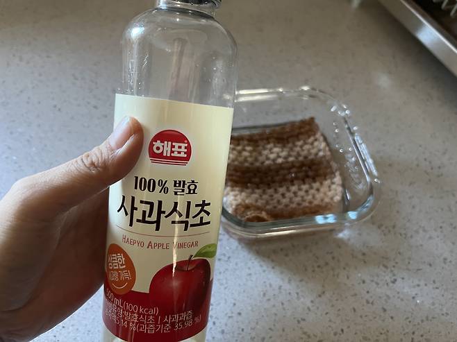 준비물 : 전자레인지용 그릇, 수세미, 식초, 랩