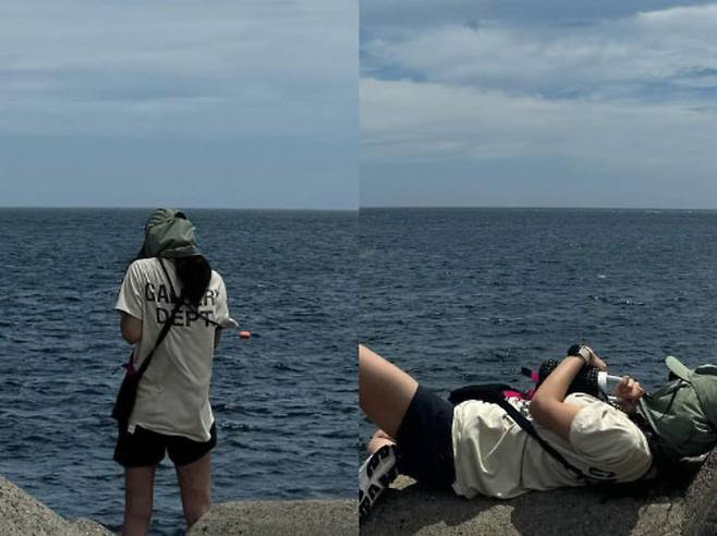 유리가 제주도 바닷가 방파제 위, 테트라포드에 누운 사진을 올렸는데요.