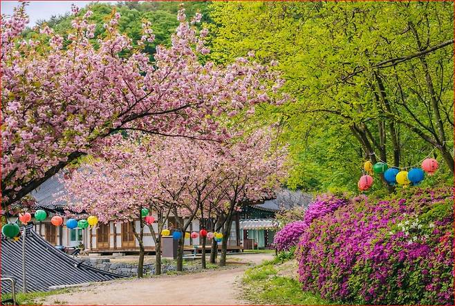 보라색과 빨간색 철쭉이 피어난 명부전 앞마당부터 고즈넉한 보화루까지, 사찰 구석구석을 누비며 봄의 생명력을 만끽해 보세요. 4월의 햇살 아래 분홍빛 겹벚꽃이 건네는 안부가 여러분의 마음을 따뜻하게 녹여줄 것입니다.