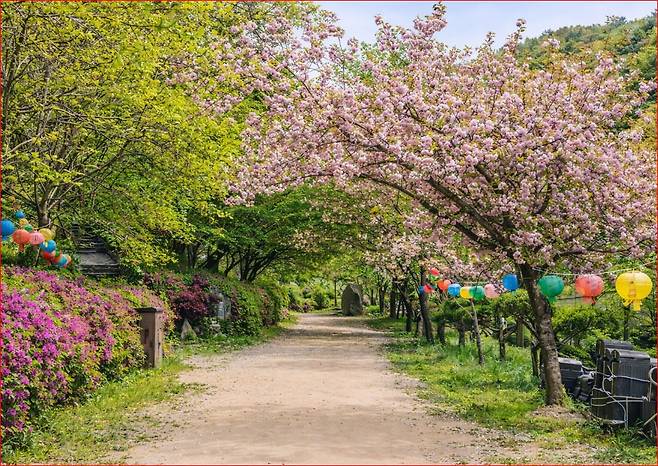 광덕산 동남쪽 산자락에 자리 잡은 광덕사는 신라 시대 자장율사가 창건한 유서 깊은 사찰입니다. 시내보다 기온이 낮아 꽃소식이 조금 늦은 편이지만, 그 덕분에 봄을 더 오래 붙잡아둘 수 있는 곳이기도 한데요. 산신각과 천불전으로 이어지는 길목에 탐스럽게 피어난 겹벚꽃은 화려한 인파에 치이지 않고 오롯이 나만의 시간을 가질 수 있는 특별한 쉼표를 선사합니다.