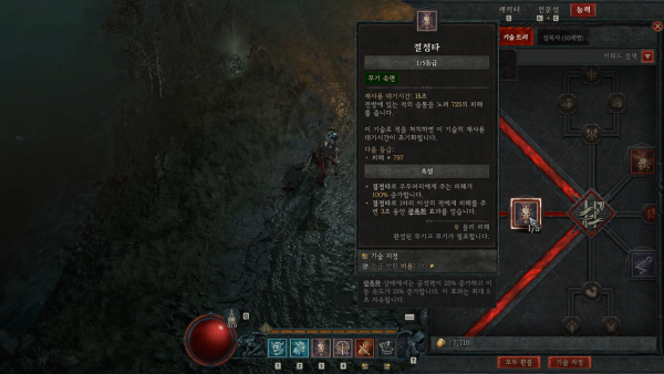 결정타는 15초 재사용 대기시간이 있지만, 해당 스킬로 적을 처치하면 재사용 대기시간이 초기화된다. 또한 분노 수급을 보조해 주는 특성 '투사의 결정타'와 광폭화 효과를 부여하는 '전사의 결정타'를 꼭 사용해야 한다. 지각 변동 빌드는 소용돌이 빌드보다 전설 옵션 채용이 자유롭다. 앞서 언급했던 대미지 옵션들을 그대로 사용한다.