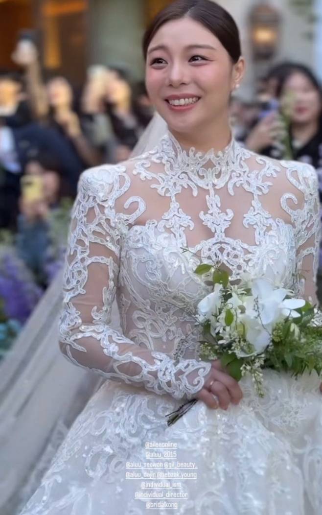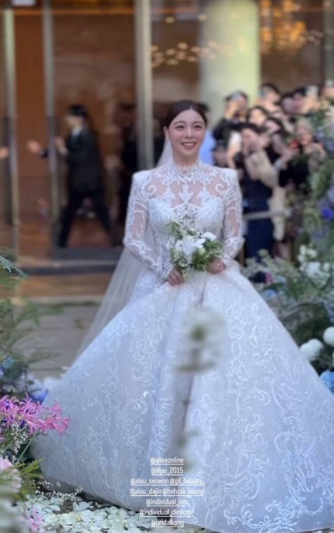 에일리 언니의 본식 드레스는 바로 ‘bridalkong’의 2025 F/W New Collection 룩! 👑 목까지 올라오는 디자인에 롱 슬리브, 화려한 디테일까지… 진짜 겨울 여왕님 같았어요! ❄️