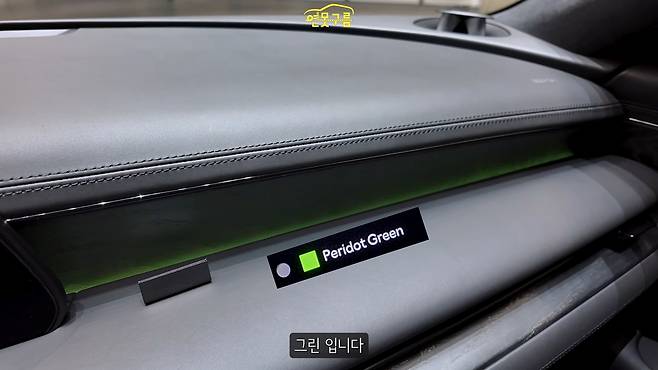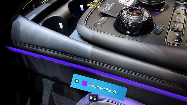 먼저 1열 도어 트림 부분의 조명을 살펴보면 우드 무늬에 고급스럽게 비치는 방식이 적용돼 있다. 아쿠아마린 화이트, 진주 화이트, 토파즈 옐로우, 사드 브라운, 가넷 레드, 퍼플, 바이올렛, 블루, 블루 그린, 그린 등 다양한 컬러가 선보인다.