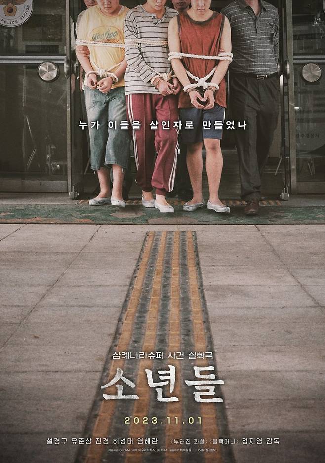 한편, 영화 <소년들>은 영문도 모른채 한순간에 살인범으로 지목된 세 소년의 억울한 17년의 이면을 들여다보는 실화극이다. 실화를 바탕으로 한국 사회의 문제점을 다뤄온 정지영 감독이 여러 차례 보도된 바 있는 삼례 나라슈퍼 사건을 극적 허구로 버무려 낸 영화다.