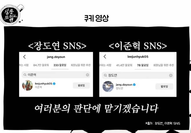 촬영이 끝나도 핑크빛은 쉬이 가시지 않았다. 이준혁은 다시 수줍게 돌아와 자신이 최근 출간한 동화책을 장도연에게 메세지를 담아 선물을 주었고, 제작진은 촬영 며칠 후 서로를 인스타 맞팔을 한 두 사람을 포착하며 "여러분의 판단에 맡기겠습니다"라는 의미심장한 자막을 남겼다.