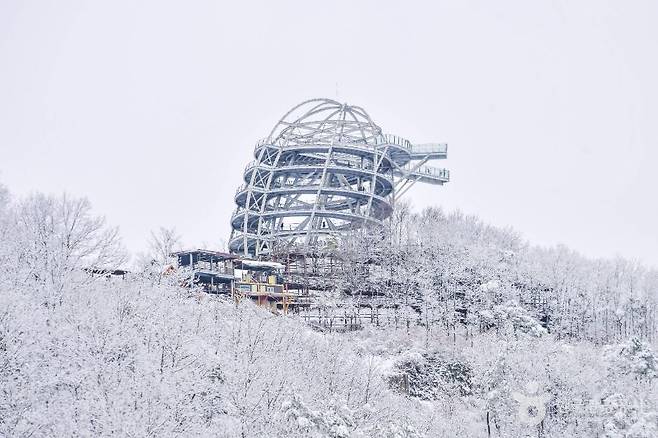 눈이 살짝 내린 날에는 난간과 바닥에 얹힌 하얀 눈이 길의 윤곽을 따라 이어지며, 마치 강 위에 떠 있는 선 하나를 따라 걷는 듯한 느낌을 줍니다.