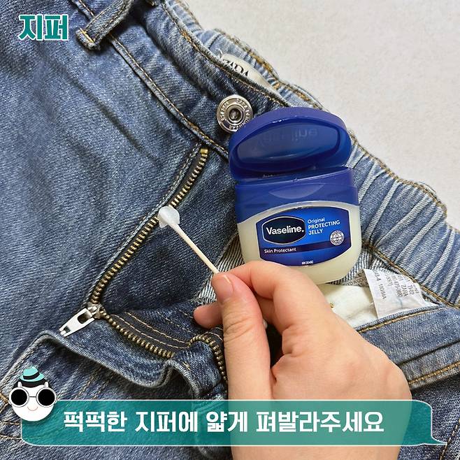 면봉에 바세린을 살짝 묻혀 지퍼 부위에 펴발라주면 되거든요. 후에 다시 도전하면 쉽게 지퍼가 열린다구요. 후후.