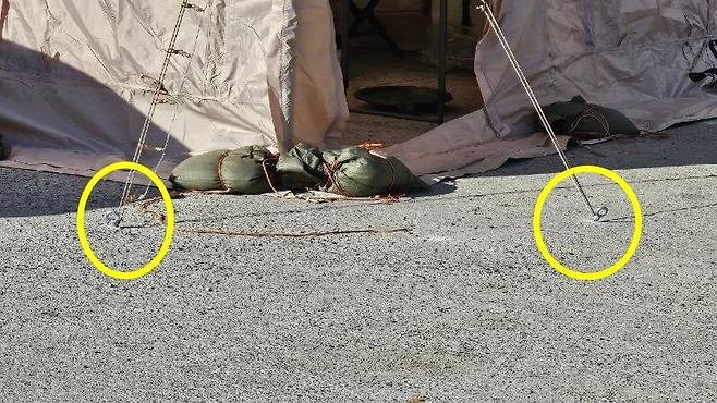 충격) 주차장 아스팔트에 드릴로 구멍내고 텐트침 ㄷㄷ