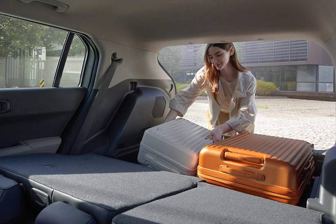 실내 공간 활용성은 EV3의 가장 큰 강점 중 하나다. 기본 트렁크 용량은 460L, 2열 시트를 완전히 폴딩하면 최대 1,250L까지 확장할 수 있다. 게다가 전기차 특성상 휠베이스가 넓어 2열 레그룸도 넉넉하며, 프런트에도 25L의 보조 수납공간(프렁크)이 있어 작은 짐을 넣기에도 유용하다.