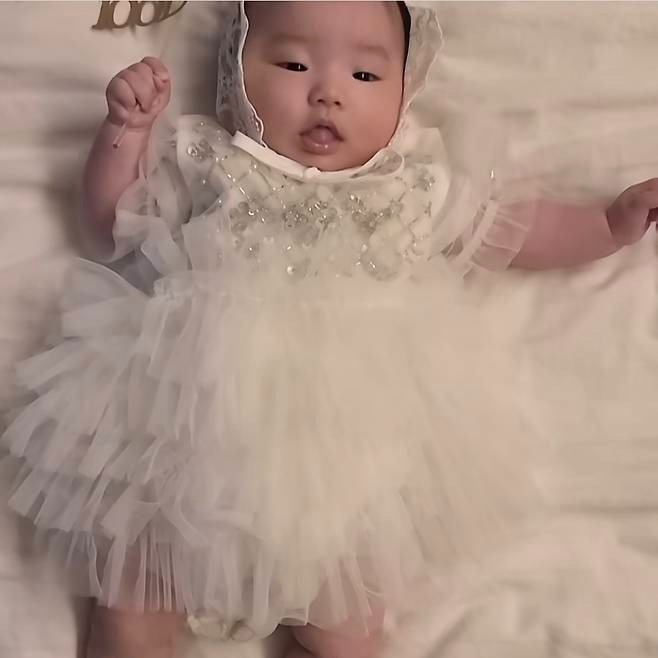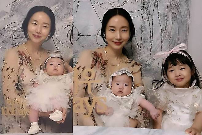 두 딸은 함께 맞춰 입은 화이트 계열의 의상으로 전체적으로 화사하면서도 러블리한 이미지를 연출했습니다.