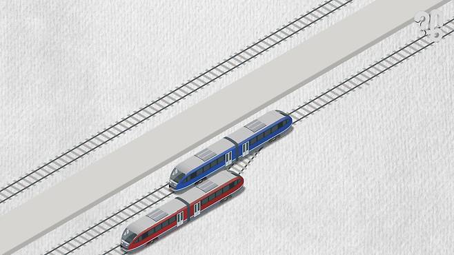 첫째, 대피로 건설에 돈이 많이 든다. 먼저 이걸 설명하려면 급행 운행의 기본 원리부터 알아야겠다. 급행 열차를 도입하려면 ‘추월’과 ‘대피’ 방책 마련이 필수다.정차역이 적은 급행은 필연적으로 앞에 가는 완행 열차를 따라잡게 된다. 그러면 완행은 역에 추가로 설치된 대피선에서 일단 대기한다.