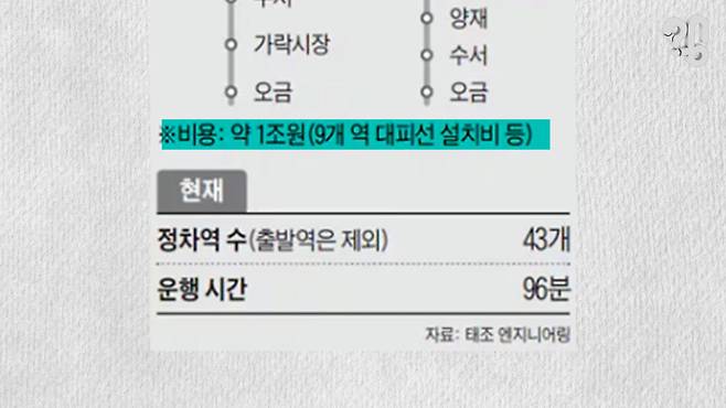 문제는 이 대피선을 새로 건설하는 데 어마어마한 돈이 든다는 것. 한국철도기술연구원은 2017년 지하철 3호선 총 9개역에 대피선을 만드는 데 약 1조원이 들 것으로 추산했다. 근데 이 금액으로는 턱도 없다는 의견도 있다.